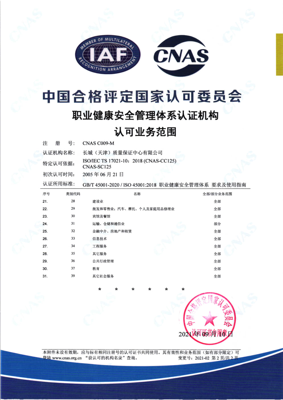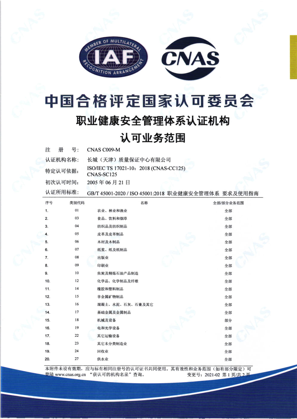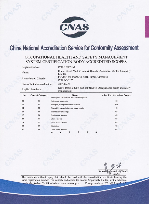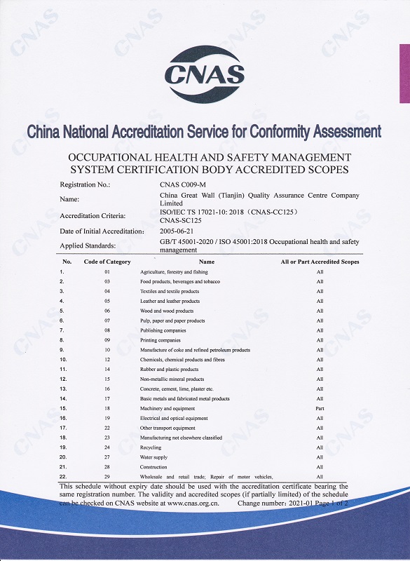 職業(yè)健康安全管理體系認(rèn)證機(jī)構(gòu)認(rèn)可業(yè)務(wù)范圍英文2