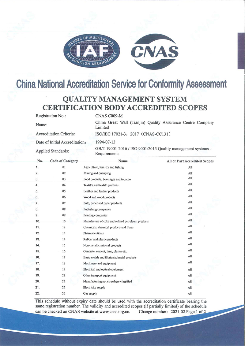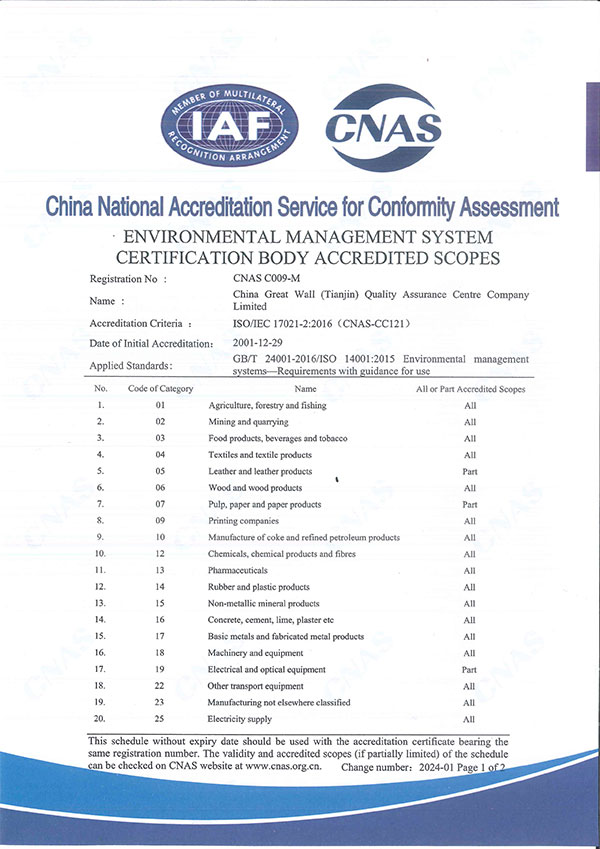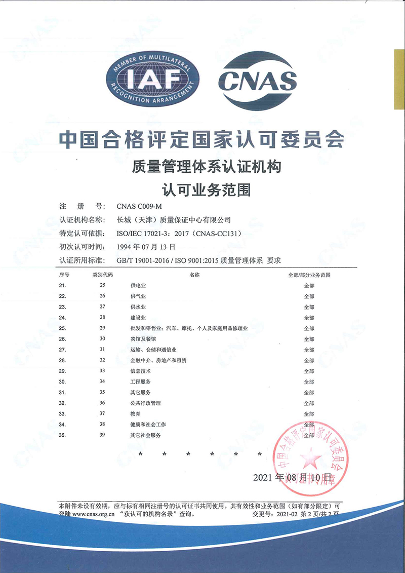 能源管理體系認(rèn)證機(jī)構(gòu)認(rèn)可業(yè)務(wù)范圍中文